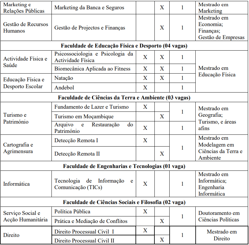 A Universidade Pedagógica de Maputo (UP-Maputo) torna público que se encontra aberto o concurso de contratação de docentes para o provimento de 25 vagas nas carreiras de Docente e Assistente Universitário, para leccionar no regime pós-laboral, no ano lectivo de 2026.