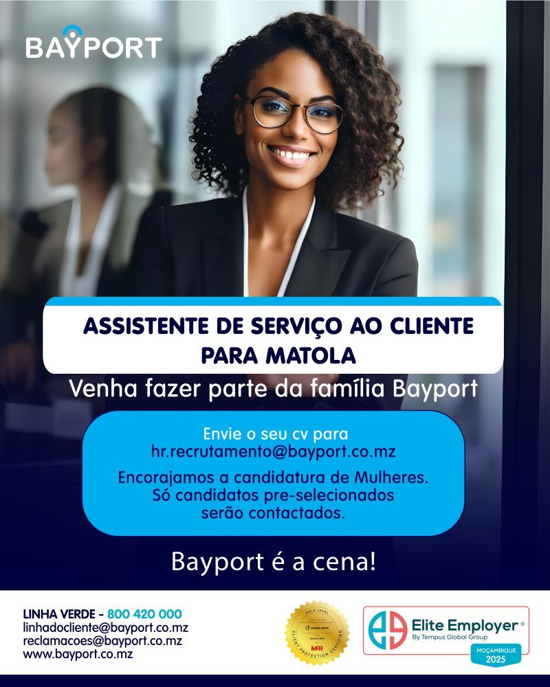 A BAYPORT FINANCIAL SERVICES MOÇAMBIQUE está a Recrutar para o seu quadro de pessoal um Assistente de Serviço ao Cliente