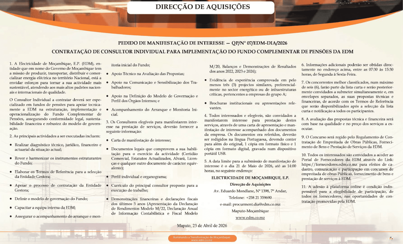 e-mail: procurment.dia@edm.co.mz