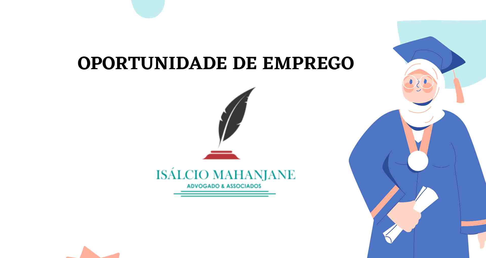 A Isálcio Mahanjane, Advogado e Associados, esta a recrutar dois (2) advogados, um com a especialidade de direito de trabalho e o outro com a especialidade de direito da família