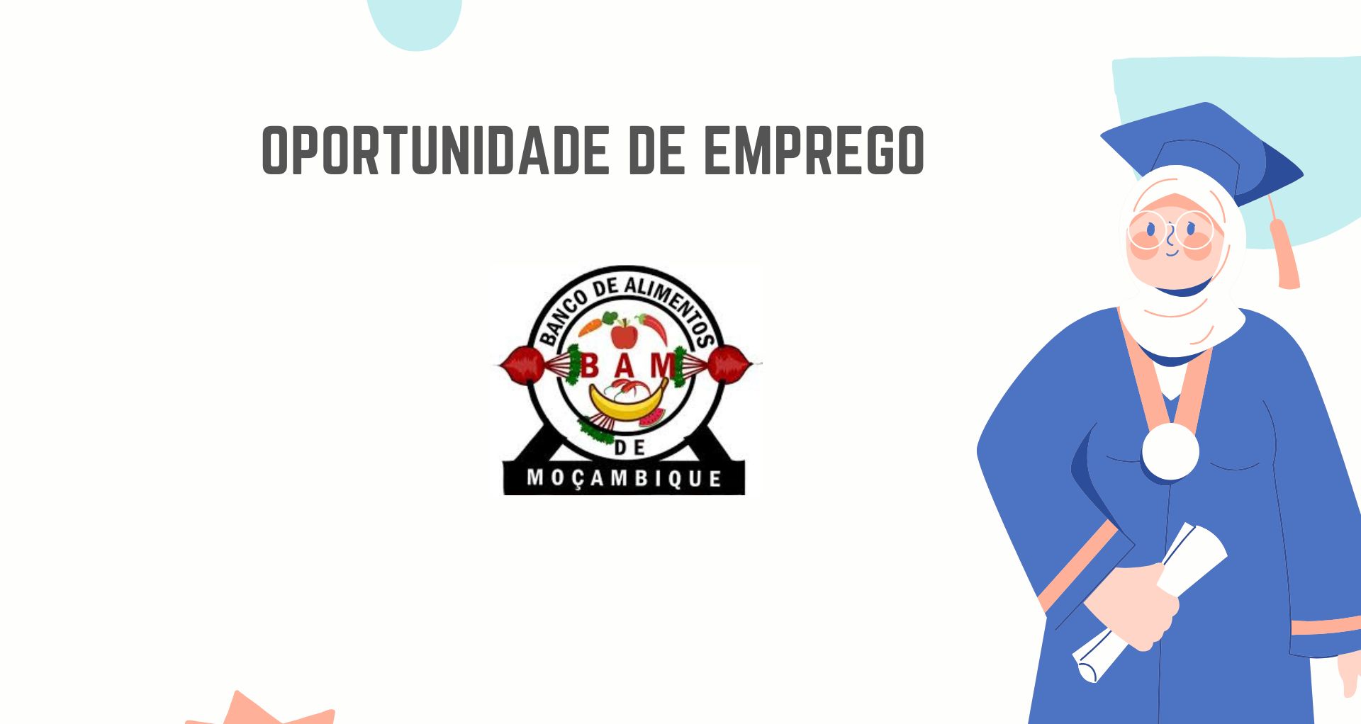 - Endereço: recrutamento@bam.org.mz (com especificação da vaga no assunto do email);