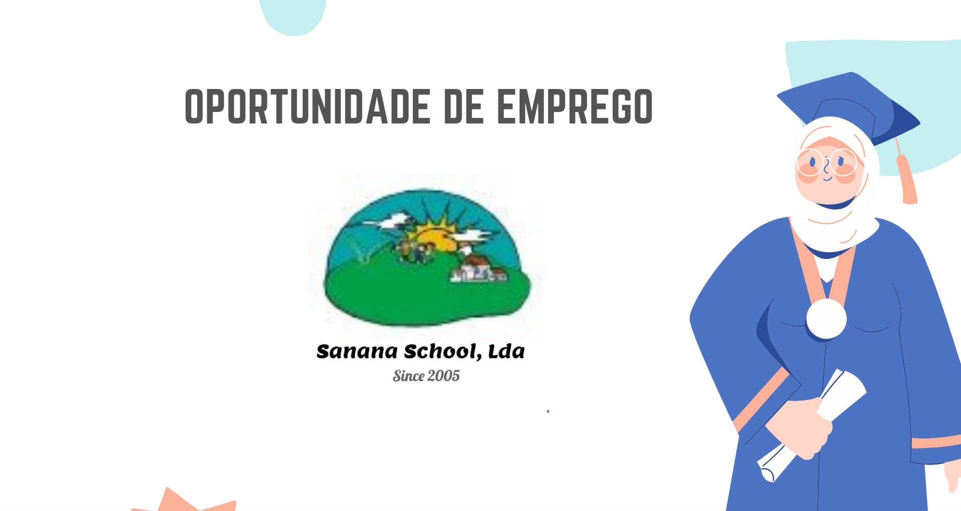 A Sanana School, instituição de ensino sediada na cidade de Maputo pretende admitir para o seu quadro de pessoal: Cinco (5) EDUCADORAS DE INFÂNCIA