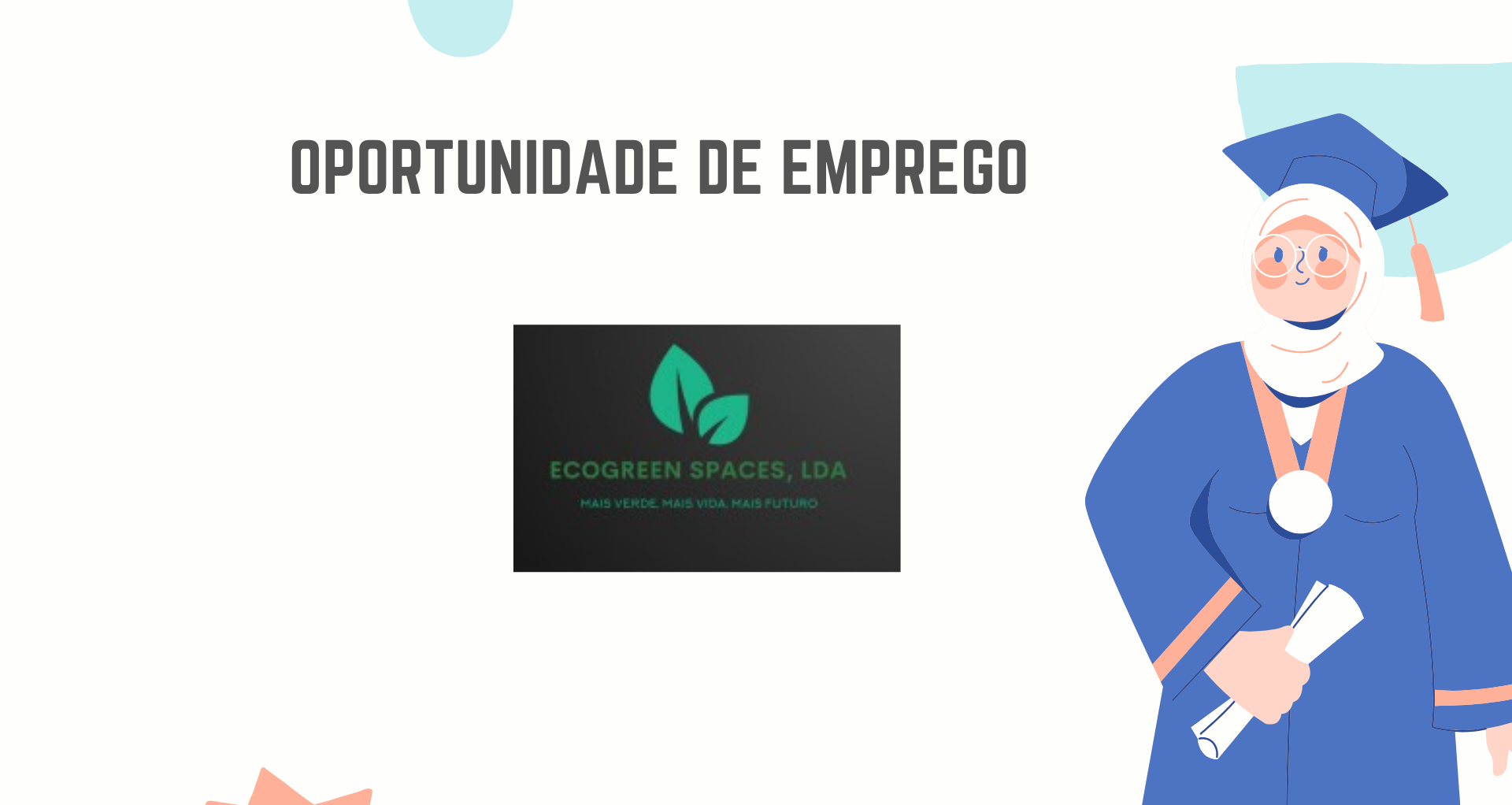 Temos o prazer de anunciar que a ECOGREEN SPACES está a recrutar voluntários(as) para integrar a nossa equipe em diferentes áreas de actuação ambiental e comunitária.