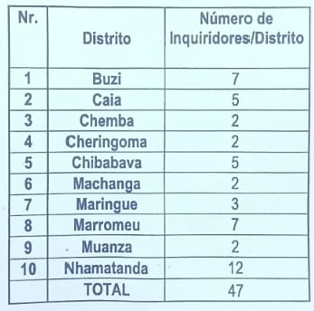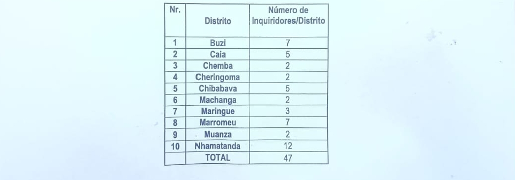 Com vista a realização de actividades de registo de beneficiários do Projecto, com duração de 30 dias, o Projecto pretende recrutar (47) Inquiridores para os distritos da Província de Sofala, conforme a lista na tabela abaixo: