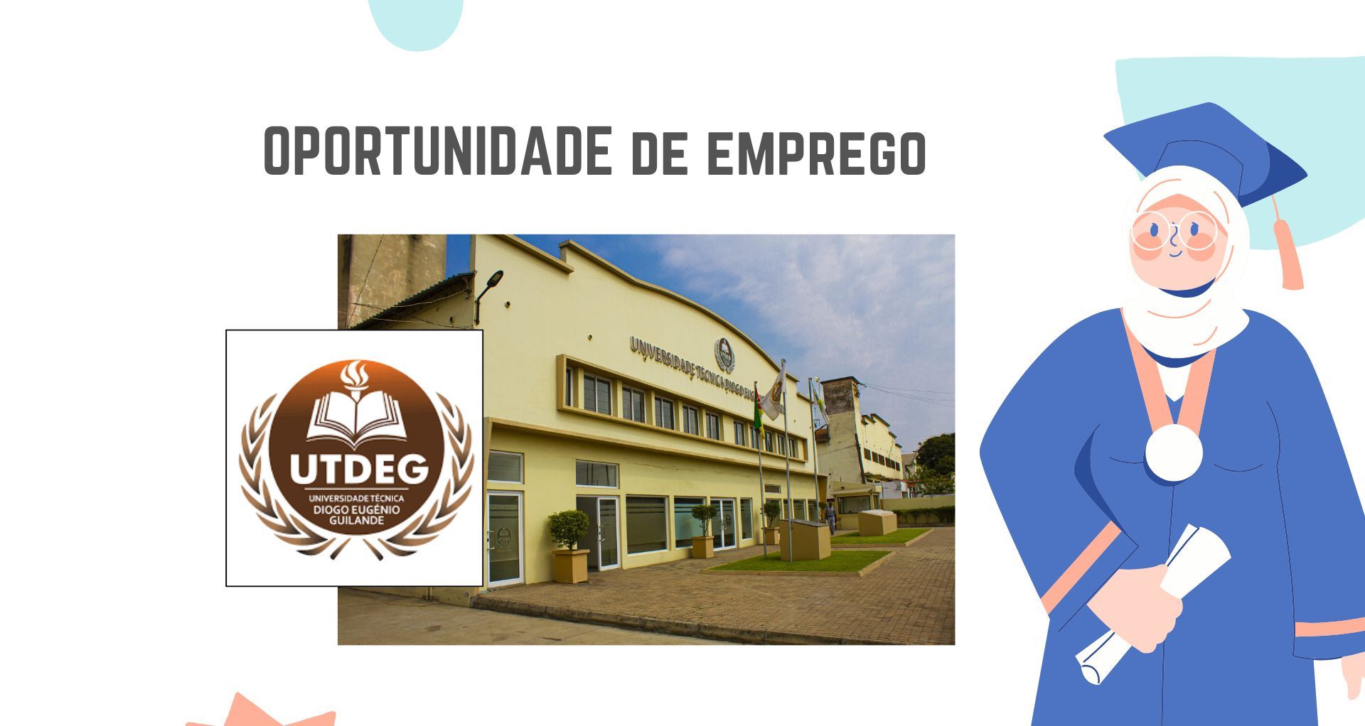 A Universidade Tecnica Diogo Eugenio Guilande – UTDEG pretende admitir para o seu quadro de pessoal candidatos a Docente a Tempo Inteiro e a Tempo Parcial, para o Curso de Licenciatura em Informática.